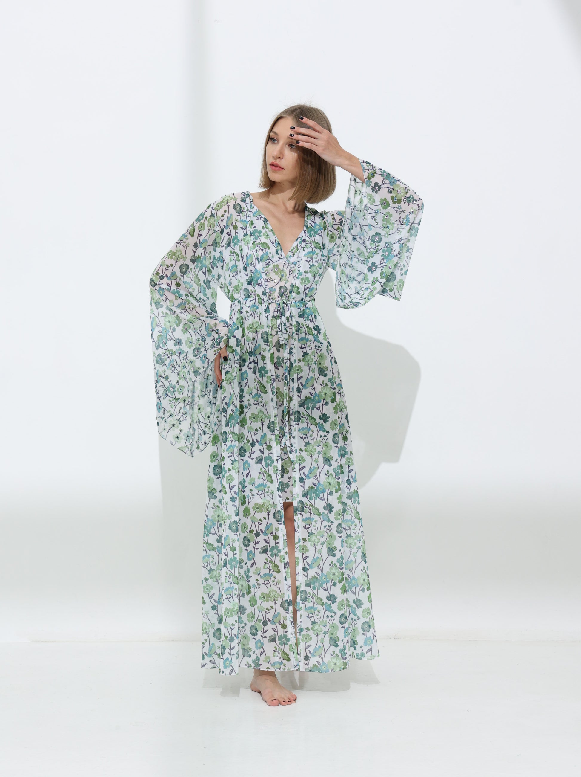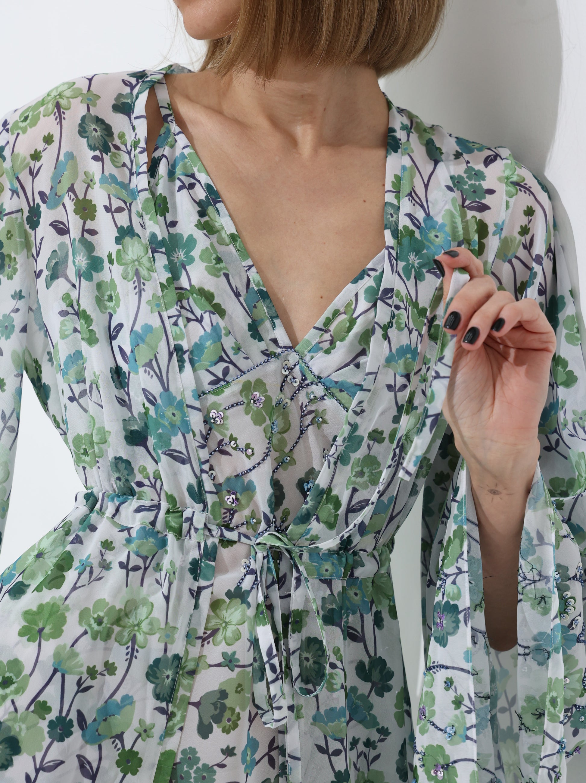 "أضيفي لمسة من الأناقة الراقية مع قطعة شيفون من مجموعة سووي ، مصممة يدوياً بخفة وانسيابية رائعة. يتميز التصميم بخامة شفافة تنساب بلطف على الجسم، لتبرز جمالك بشكل ناعم وجريء. العمل اليدوي الدقيق يضفي لمسة فريدة ورومانسية، لتكوني أنيقة ومميزة في كل مناسبة."