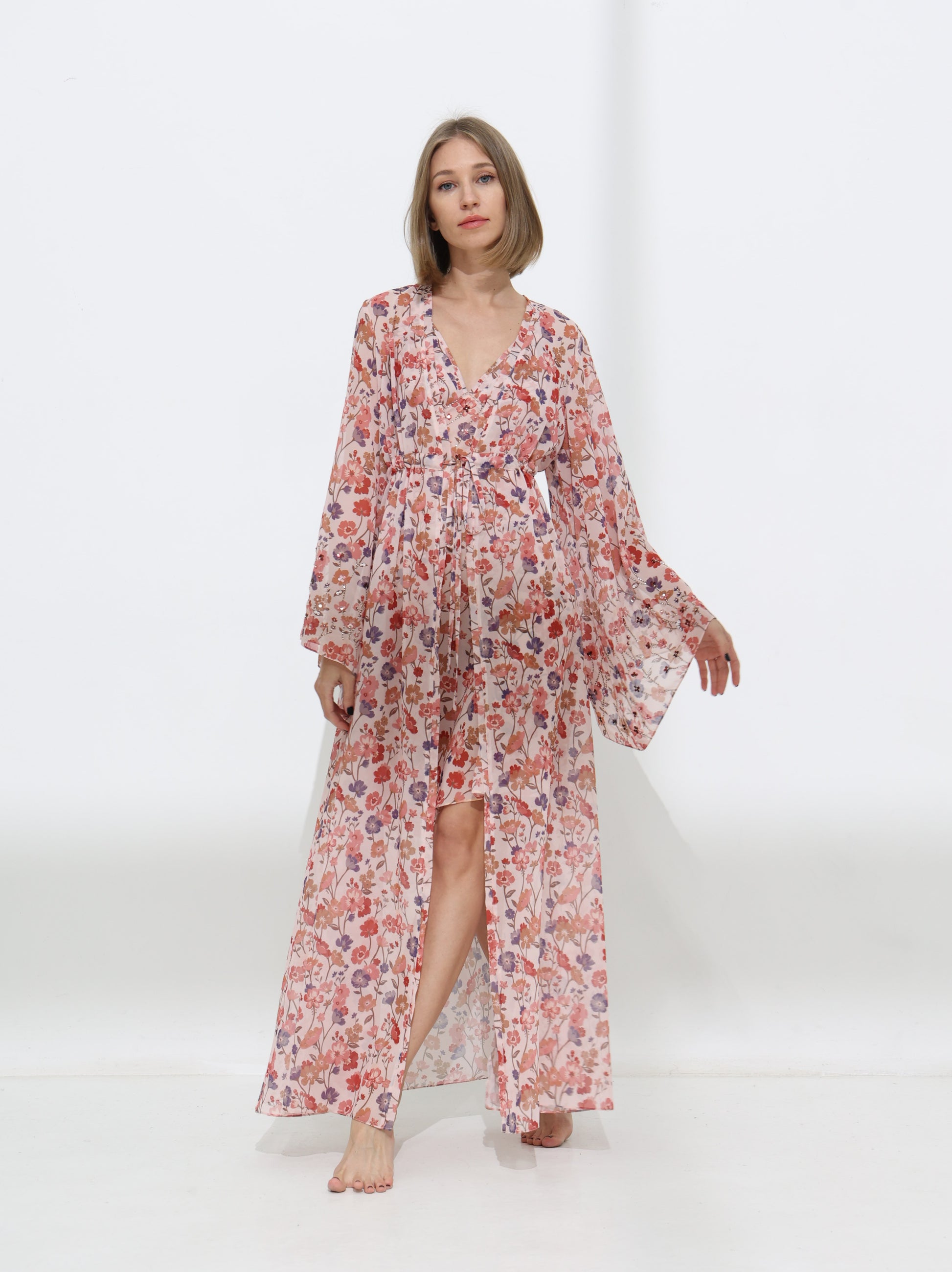 "أضيفي لمسة من الأناقة الراقية مع قطعة شيفون من مجموعة سووي ، مصممة يدوياً بخفة وانسيابية رائعة. يتميز التصميم بخامة شفافة تنساب بلطف على الجسم، لتبرز جمالك بشكل ناعم وجريء. العمل اليدوي الدقيق يضفي لمسة فريدة ورومانسية، لتكوني أنيقة ومميزة في كل مناسبة."