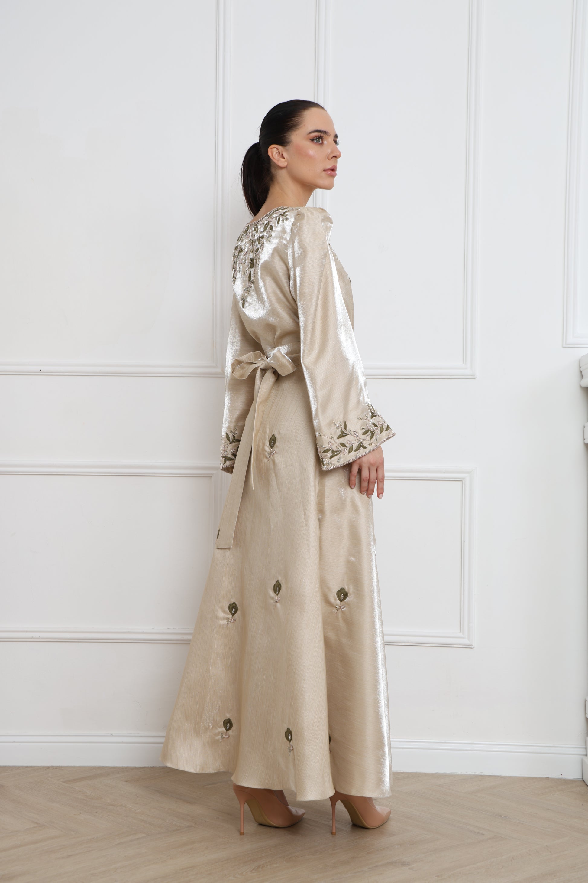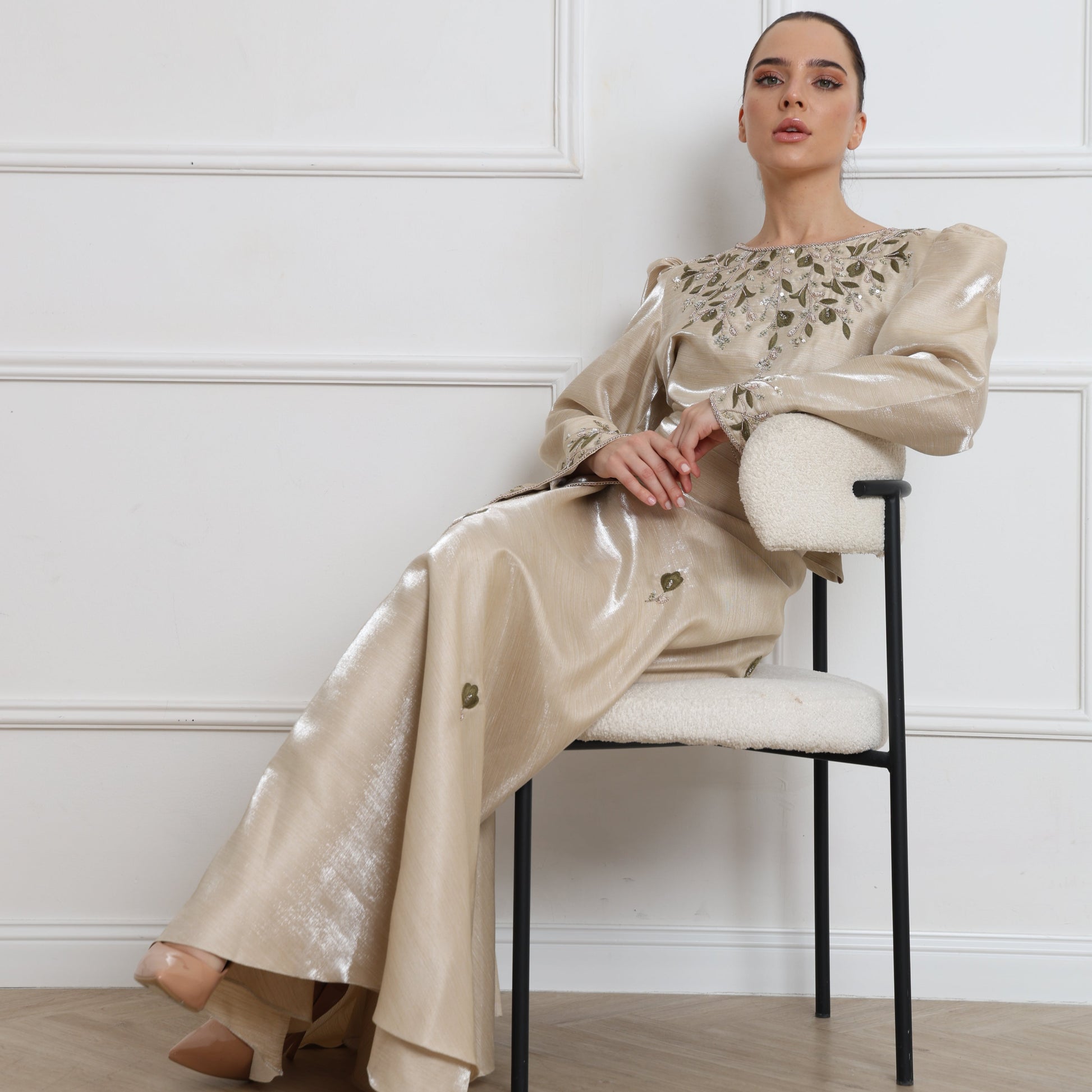 ارتقي بإطلالتك مع تنورة ليفز المصنوعة من قطعة هنديه فاخره ، بتصميم مستوحى من عناصر الطبيعة، تتزيّن برسومات أوراق ناعمة تضيف لمسة فنية فريدة.