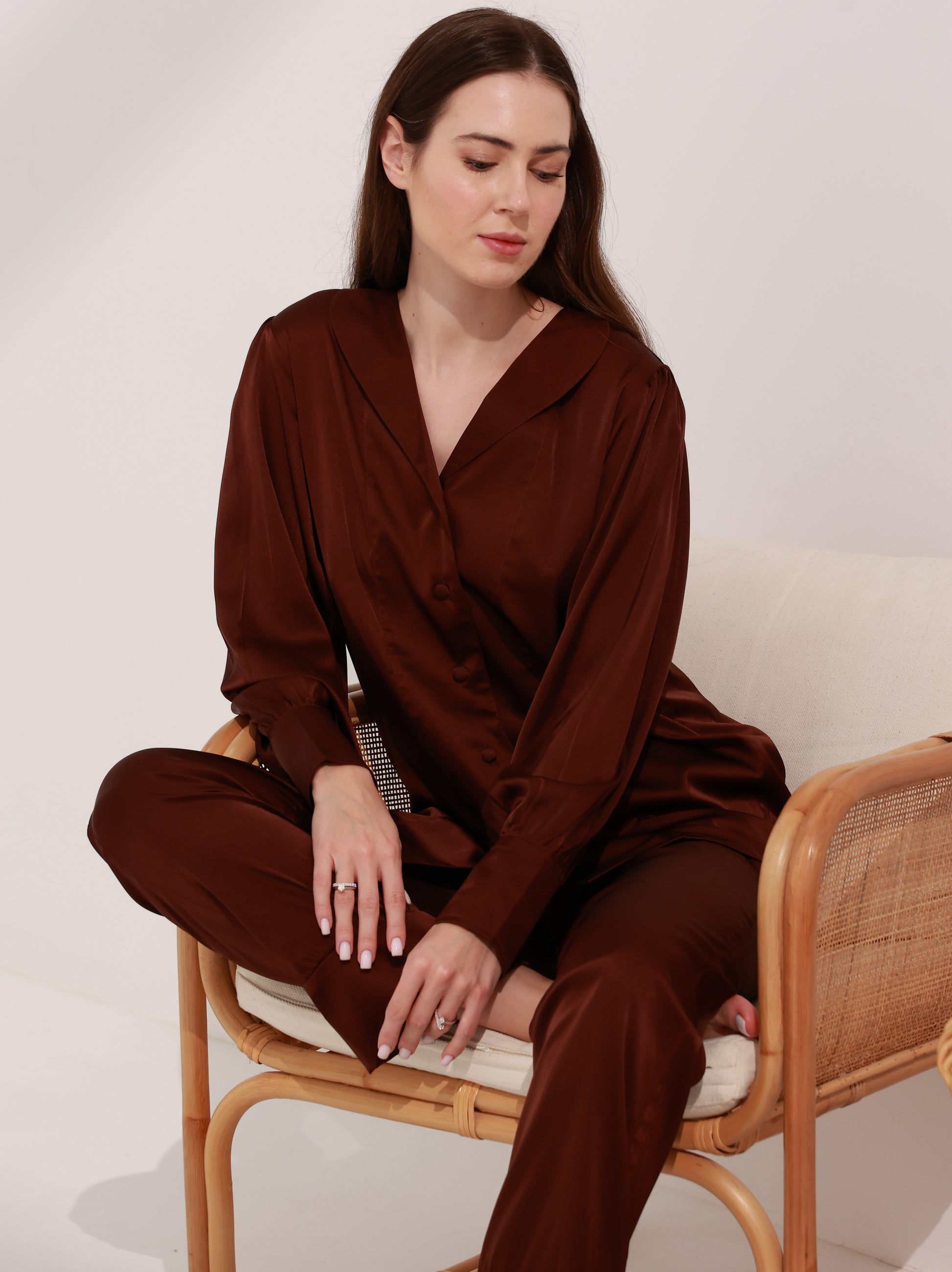 A soft pajama set with a relaxed, feminine design, paired with a lightweight robe for an effortlessly elegant touch.